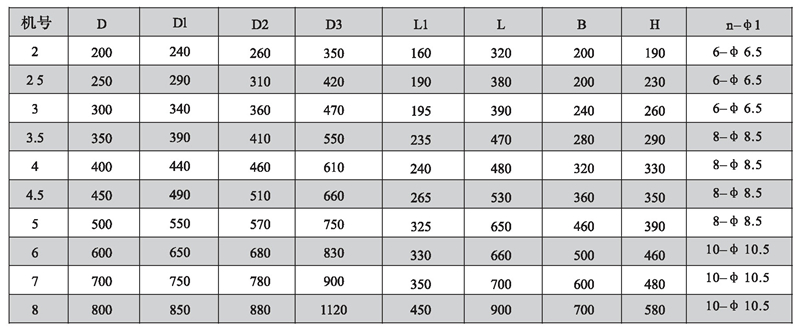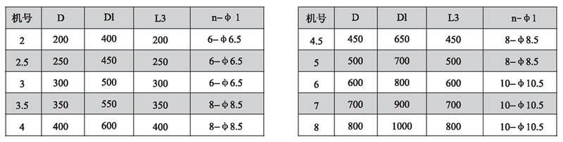 注:風(fēng)機(jī)出廠時(shí)法蘭一般不打孔。n-φ1僅供參考,若要打孔請(qǐng)用戶在訂貨時(shí)說(shuō)明.