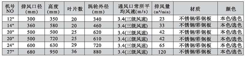 ⑥適用于工廠、倉庫、大廈天臺、別墅、天井、花房、禽畜養(yǎng)殖、礦山坑道及一切房頂?shù)耐?、換氣、散氣場所。