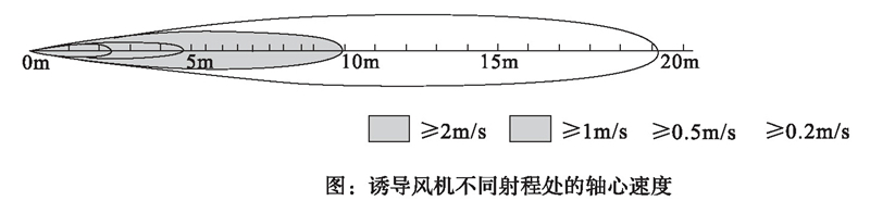 注:式中Qx射程x處射流誘導(dǎo)風(fēng)量,Qo-誘導(dǎo)風(fēng)機(jī)的風(fēng)量;