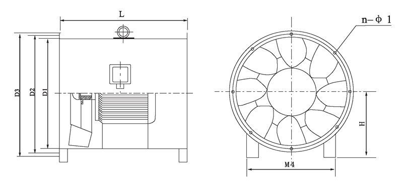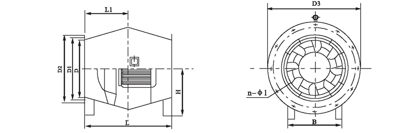 注:風(fēng)機(jī)出廠時(shí)法蘭一般不打孔。n-φ1僅供參考,若要打孔請(qǐng)用戶在訂貨時(shí)說(shuō)明.