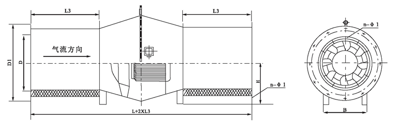 2.風(fēng)機(jī)出廠時(shí)法蘭一般不打孔n-φ1僅供參考,若要打孔請(qǐng)用戶在訂貨時(shí)說(shuō)明。