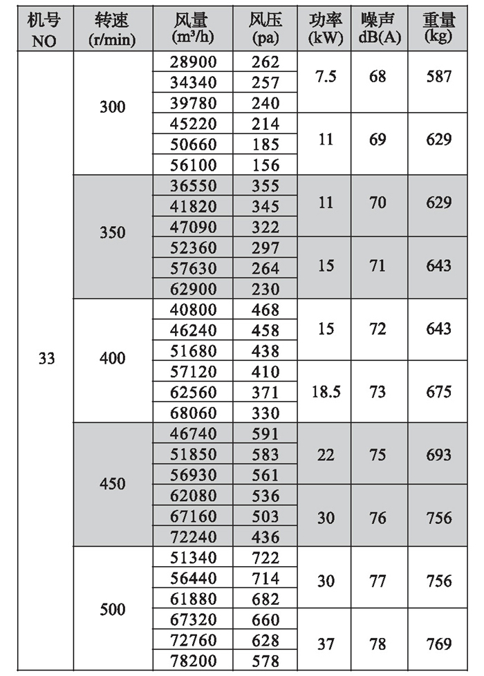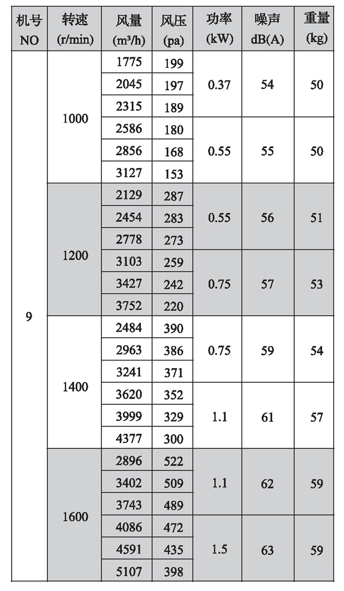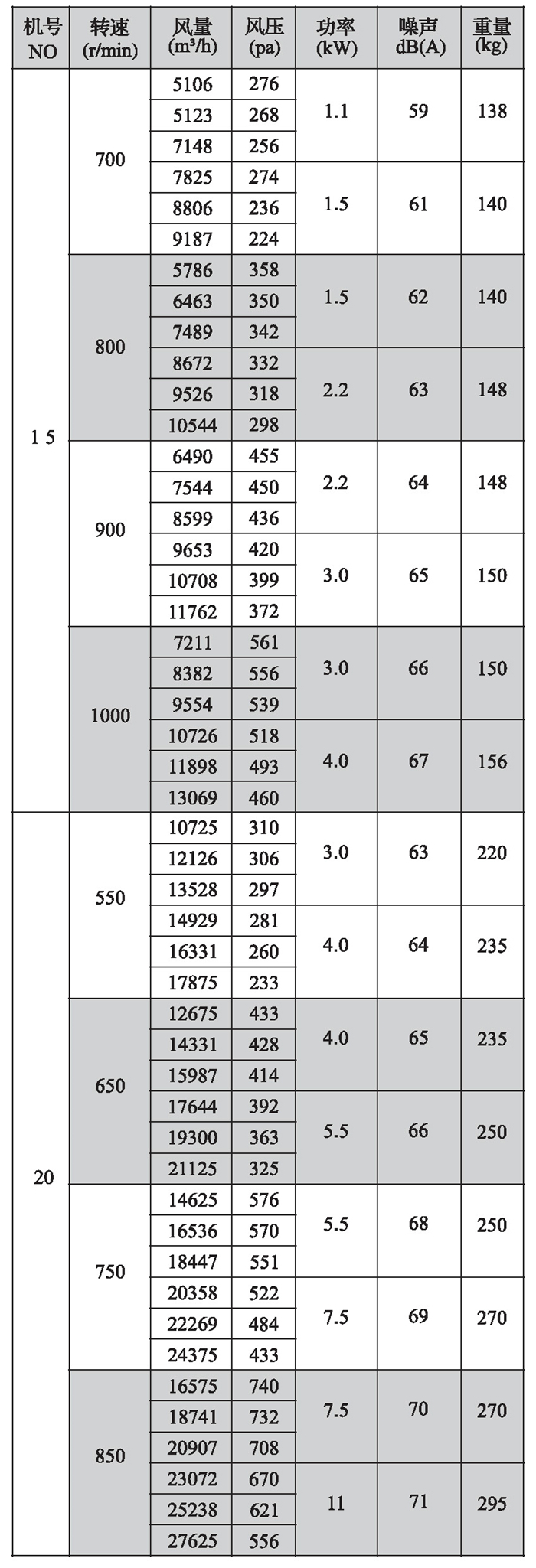 2.機號NO為葉輪直徑英寸數(shù),如電機放在風機上面,A型高度須補加電機高度,寬度須補加皮帶罩寬度;如電機放在風機側面,A型寬度須補加電機長度。